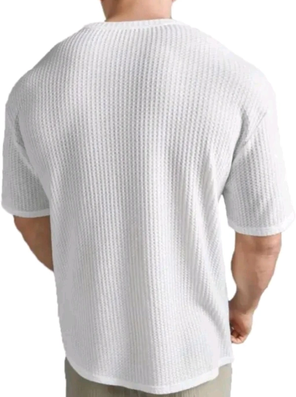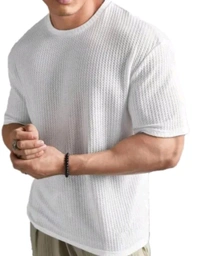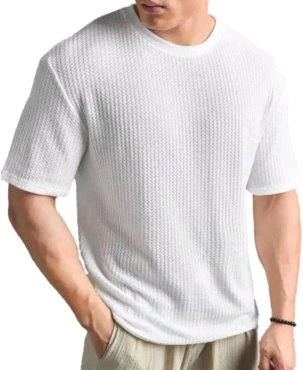 Introducing our Men's Striped Round Neck Cotton Blend Popcorn T-Shirt in a crisp white color, a versatile addition to your wardrobe. Crafted from a premium cotton blend, this T-shirt offers a perfect balance of comfort and style.