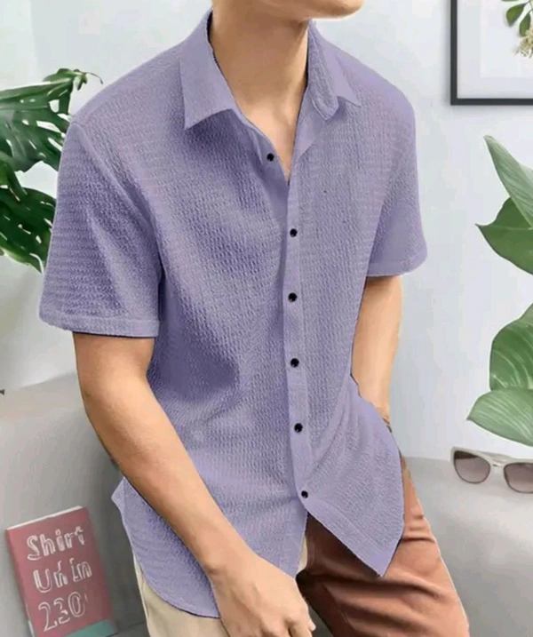 Discover the new men's popcorn fabric half sleeve shirt, offering unmatched versatility. Ideal for weddings, family functions, and daily wear, this 100% pure cotton shirt ensures you look sharp for any occasion.
